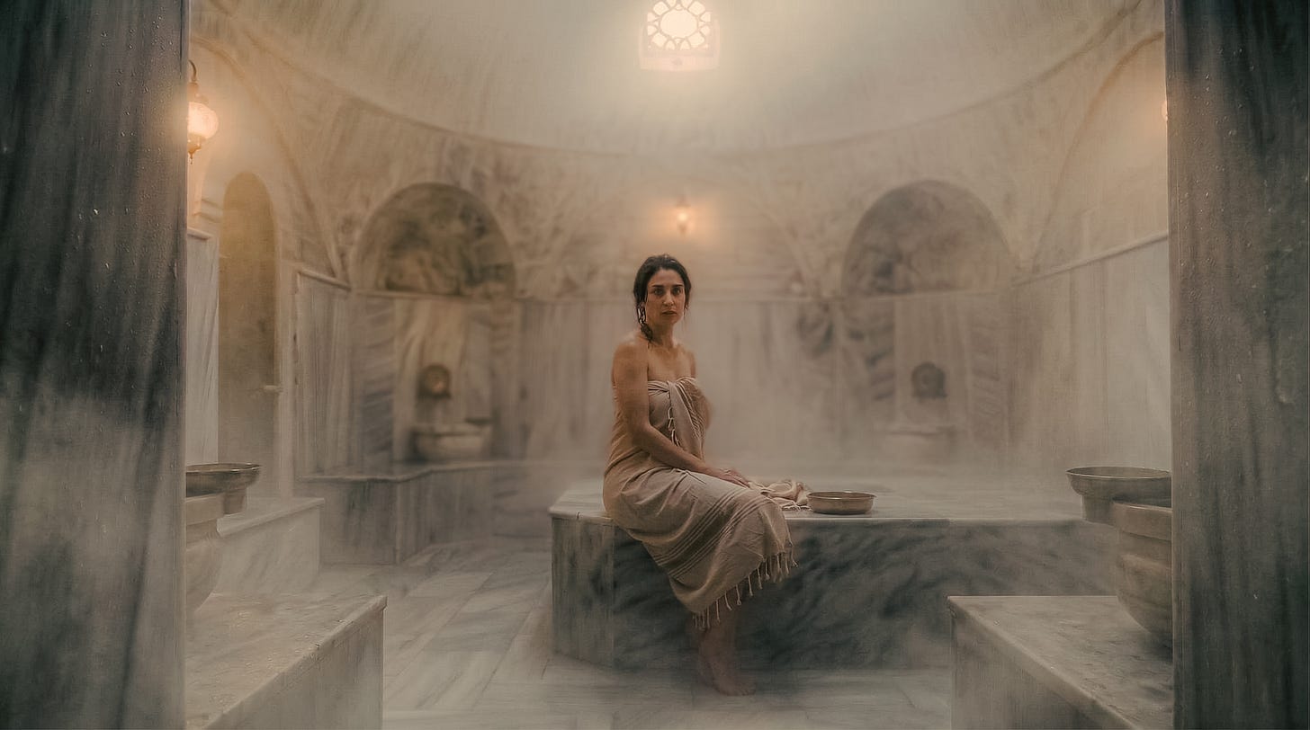 I quiet the conspiracy generator. Stare into infinity. Breathe slowly through my nostrils. Four in. Seven hold. Eight out. The kind of deliberate calm that fools nobody — least of all someone trained to read faux indifference from across a steam room.